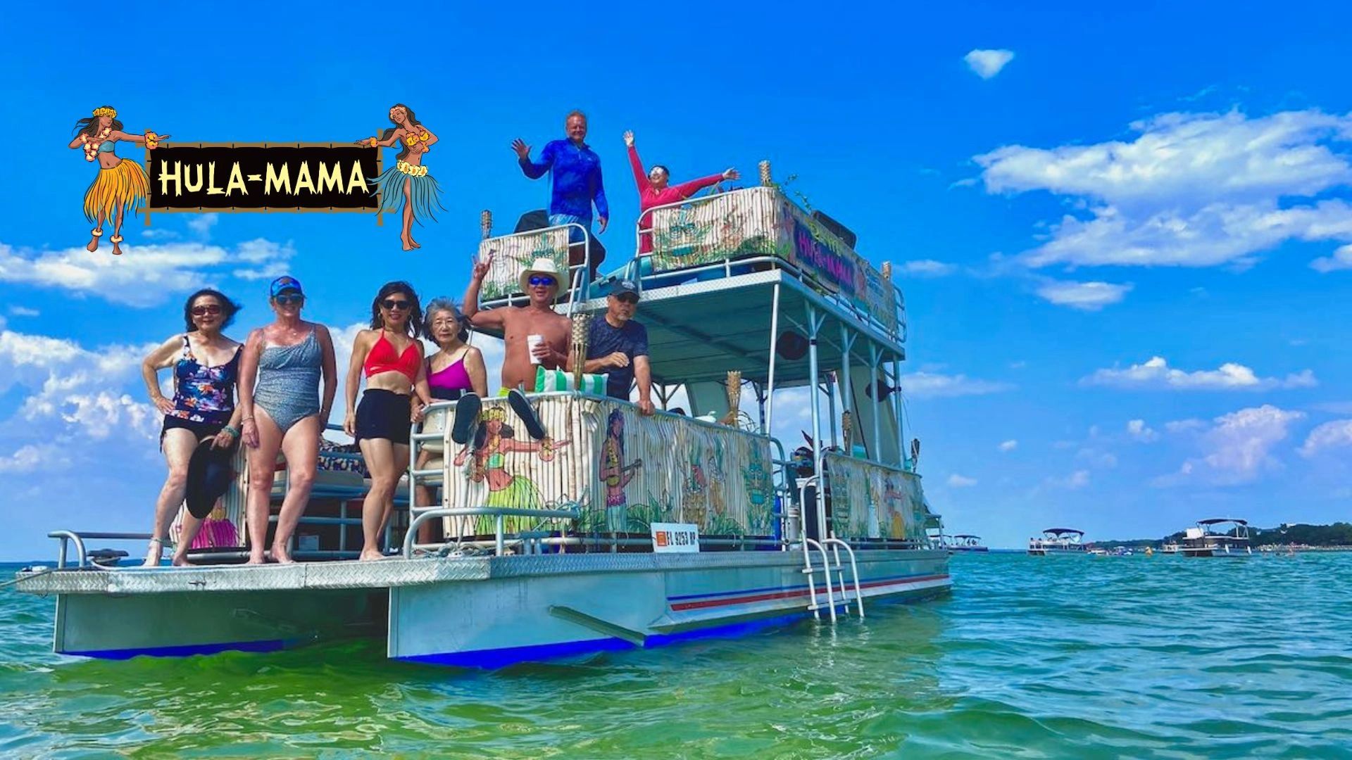 Step aboard the unforgettable Hula Mama, a 30-foot double-decker tiki pontoon designed for fun, comfort, and plenty of space to spread out. With room for up to 12 guests, this catamaran-style boat offers a smooth, stable ride and an open layout so your group can relax, celebrate, and enjoy the day without feeling crowded.